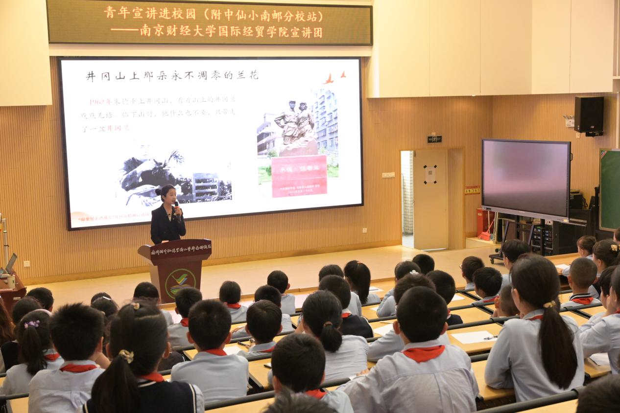 “青果宣讲团”走进南师附中仙林学校小学部南邮校区,带领同学们重温井冈山革命岁月,学习“两弹一星”精神。