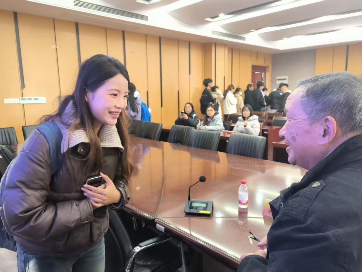 互动环节中,刘老面对学员的积极提问都耐心解答。针对青马班学员姚婉晨同学对“新时代青年该如何将艰苦奋斗精神融入日常学习”的问题,刘老指出,“艰苦奋斗不是吃苦,而是在该拼搏的年纪全力以赴,学好知识、练好本领,在学习的‘战场’上勇争先锋”。课后,刘老仍留在现场,与围拢过来的学员们继续交流,认真解答关于成长、择业与价值观的疑问,现场氛围温馨热烈。